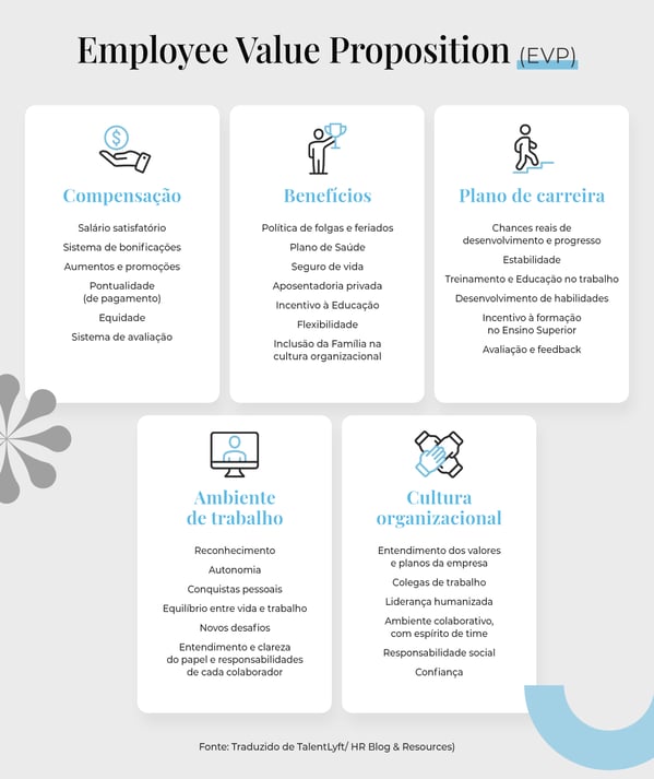 Claro que uma boa remuneração faz parte de um pacotão de vantagens. Mas com a inflação nas alturas, as empresas estão sendo desafiadas a repensar estratégias realmente competitivas. É aí que entram os cinco pilares do EVP: compensação, benefícios, plano de carreira, ambiente de trabalho e cultura organizacional.